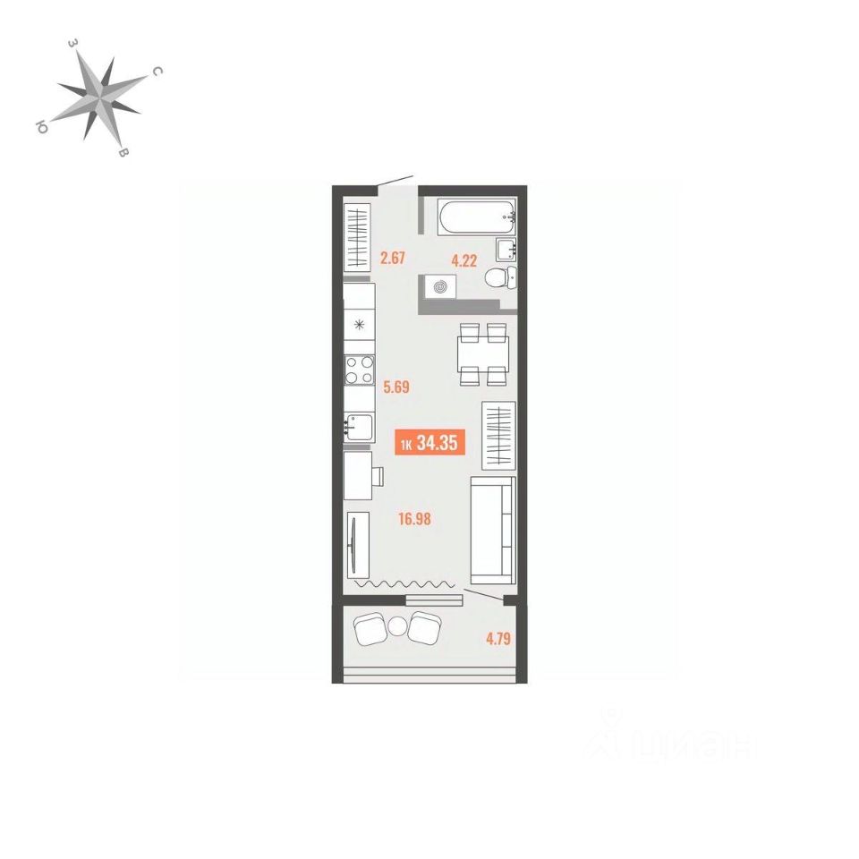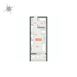 Продаётся 1-комнатная квартира в строящемся доме (Дом 1), срок сдачи: I-кв. 2028, общей площадью 34.35 кв.м., на 5 этаже. Для тех, кто строит будущее Большого Камня