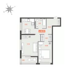 Продаётся 2-комнатная квартира в строящемся доме (Дом 1), срок сдачи: I-кв. 2028, общей площадью 64.75 кв.м., на 5 этаже. Для тех, кто строит будущее Большого Камня