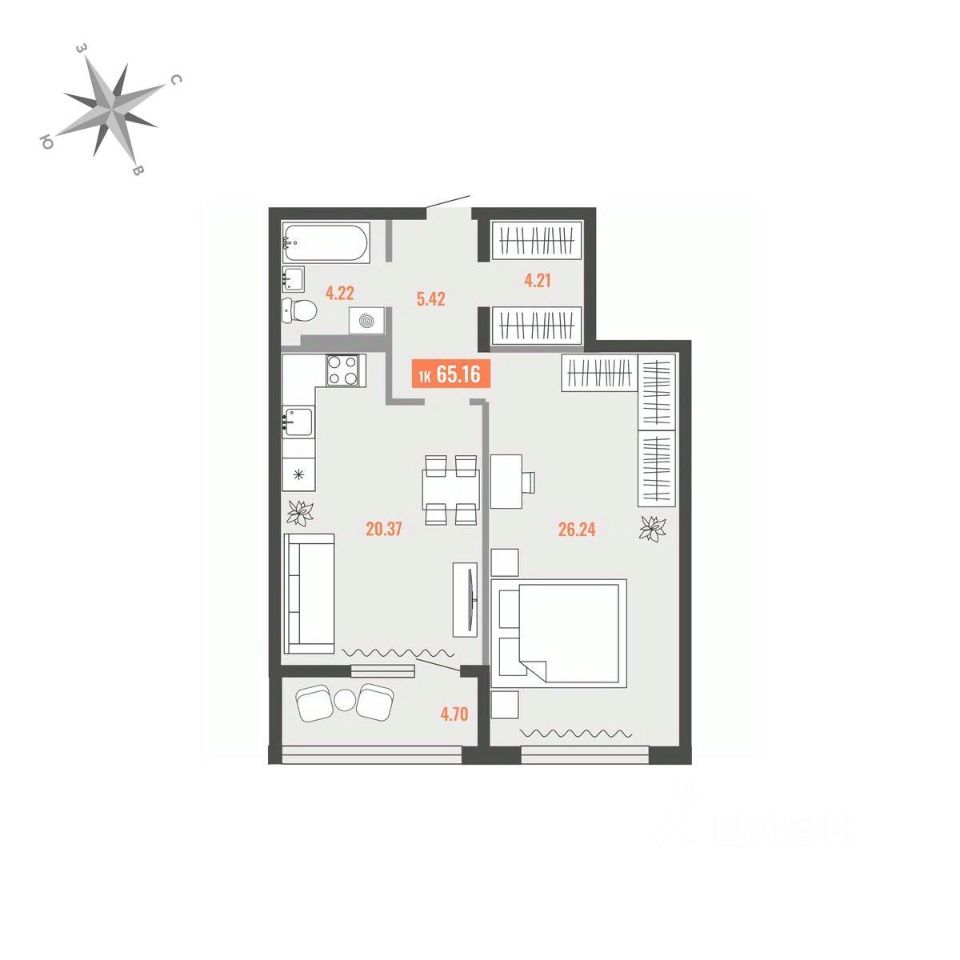 Продаётся 2-комнатная квартира в строящемся доме (Дом 1), срок сдачи: I-кв. 2028, общей площадью 65.16 кв.м., на 6 этаже. Для тех, кто строит будущее Большого Камня