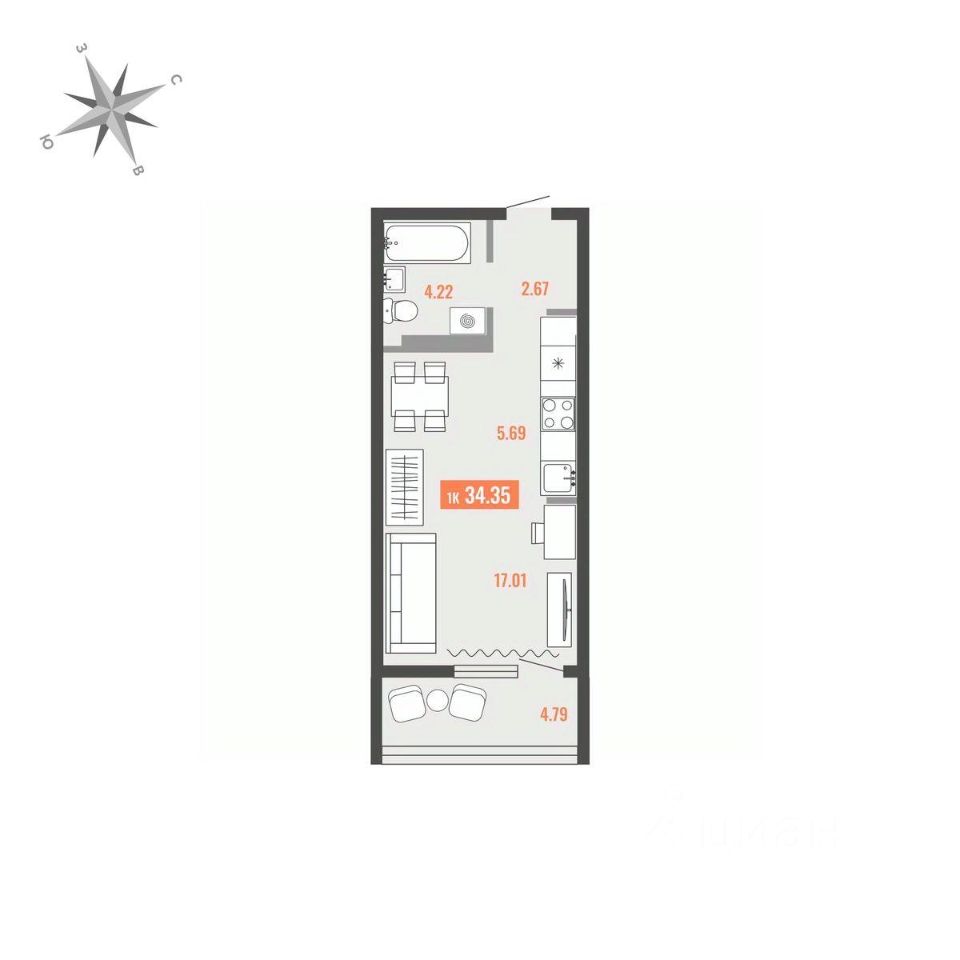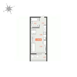Общая площадь34,35 м²