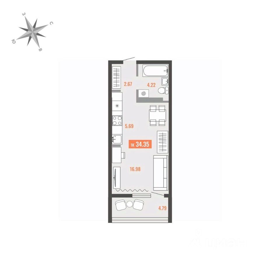 Продаётся 1-комнатная квартира в строящемся доме (Дом 1), срок сдачи: I-кв. 2028, общей площадью 34.35 кв.м., на 6 этаже. Для тех, кто строит будущее Большого Камня