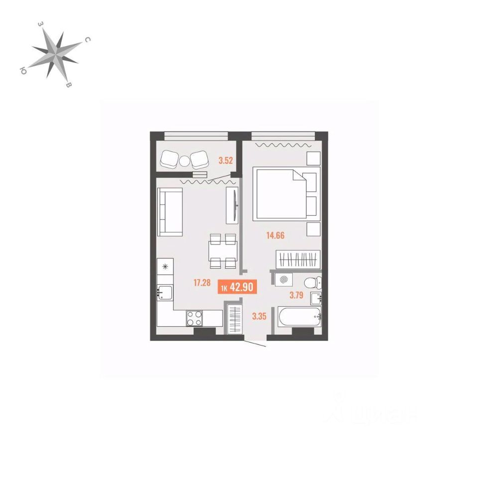 Продаётся 1-комнатная квартира в строящемся доме (Дом 1), срок сдачи: I-кв. 2028, общей площадью 42.9 кв.м., на 7 этаже. Для тех, кто строит будущее Большого Камня