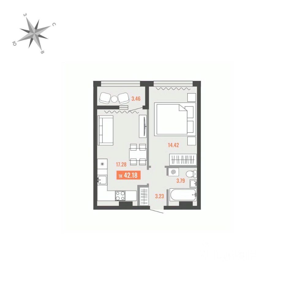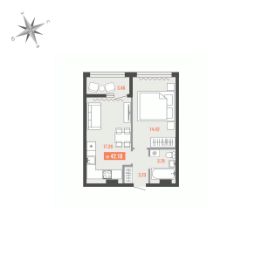 Продаётся 1-комнатная квартира в строящемся доме (Дом 1), срок сдачи: I-кв. 2028, общей площадью 42.18 кв.м., на 1 этаже. Для тех, кто строит будущее Большого Камня