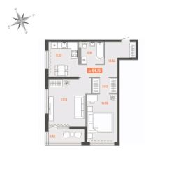 Продаётся 2-комнатная квартира в строящемся доме (Дом 1), срок сдачи: I-кв. 2028, общей площадью 64.75 кв.м., на 8 этаже. Для тех, кто строит будущее Большого Камня