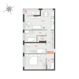 Продаётся 3-комнатная квартира в строящемся доме (Дом 1), срок сдачи: I-кв. 2028, общей площадью 85.65 кв.м., на 9 этаже. Для тех, кто строит будущее Большого Камня