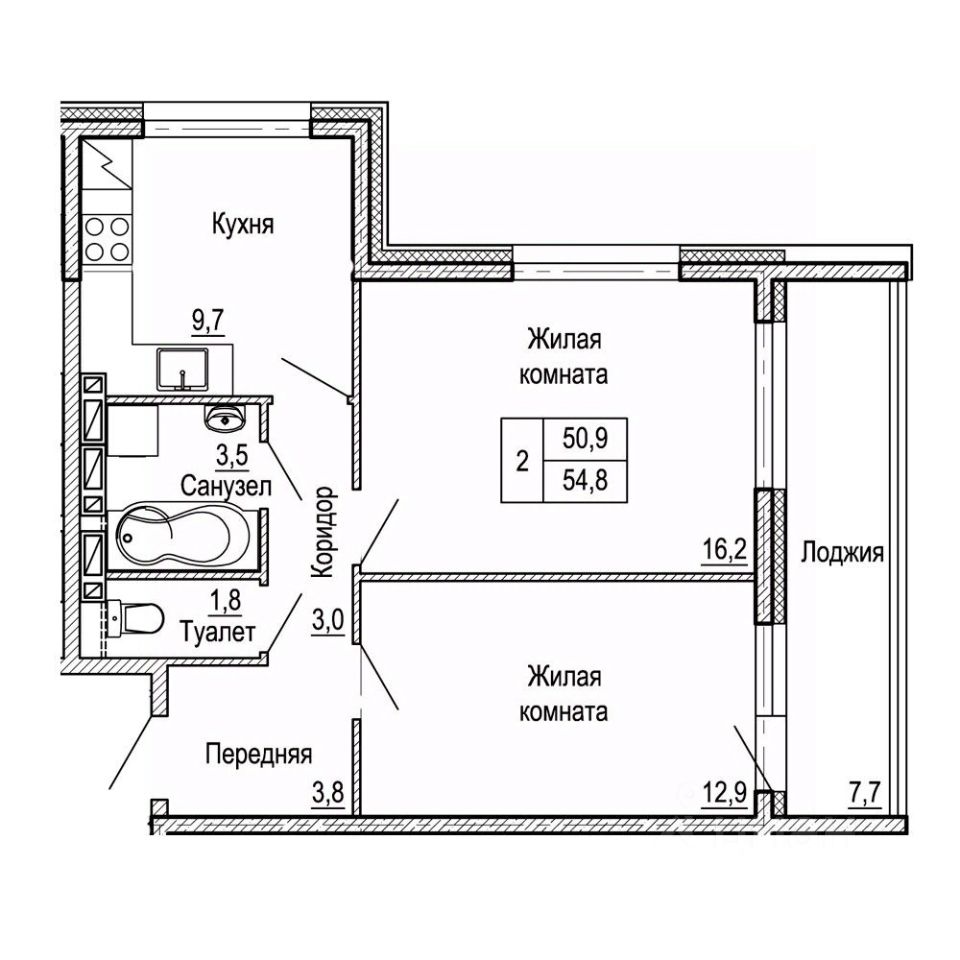54,8 м²