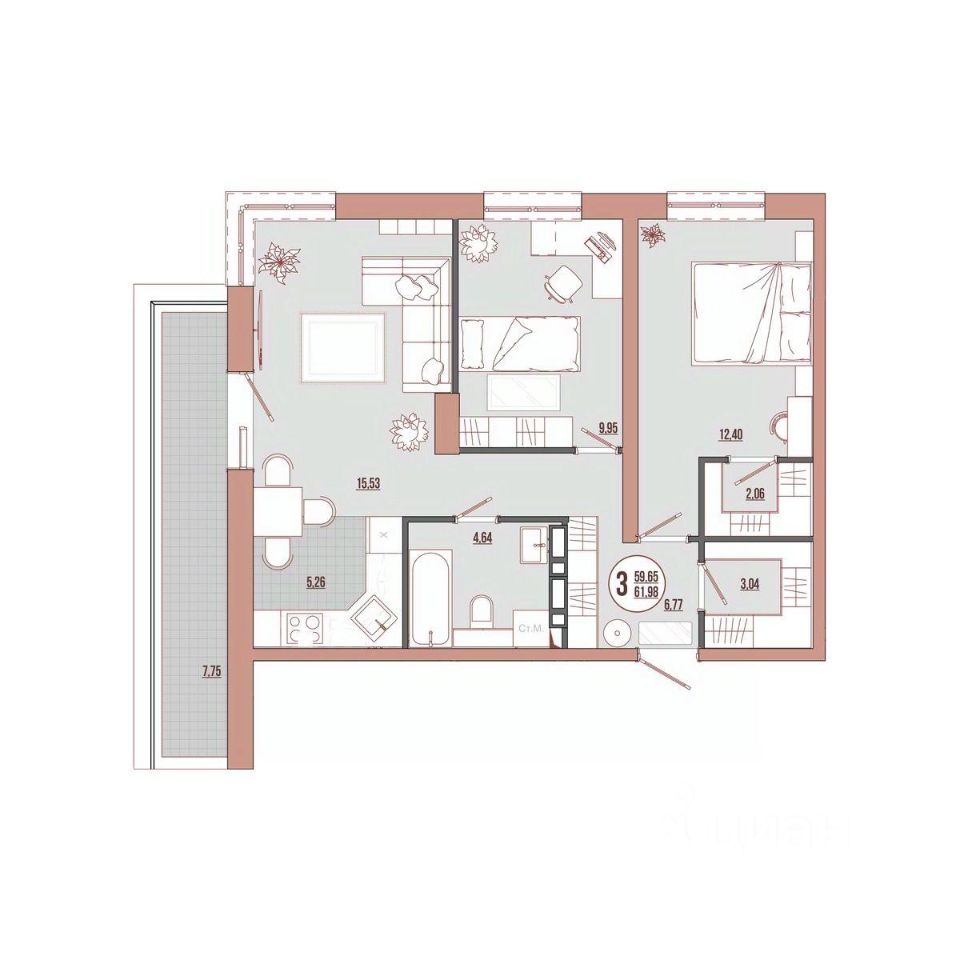 Продаётся 3-комнатная квартира в строящемся доме (Корпус 1), срок сдачи: III-кв. 2026, общей площадью 61.98 кв.м., на 2 этаже. Новый жилой дом от застройщика "СЗ Стоунлэнд" расположен по адресу: Россия, Приморский край, Владивосток, улица Адмирала Юмашева