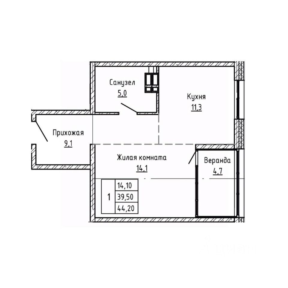 Жилая площадь14,1 м²