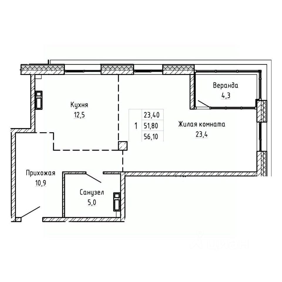 Общая площадь56,1 м²