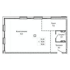 Жилая площадь55,3 м²