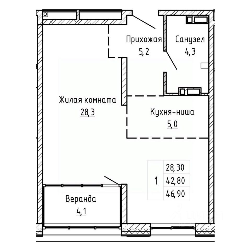 Жилая площадь28,3 м²