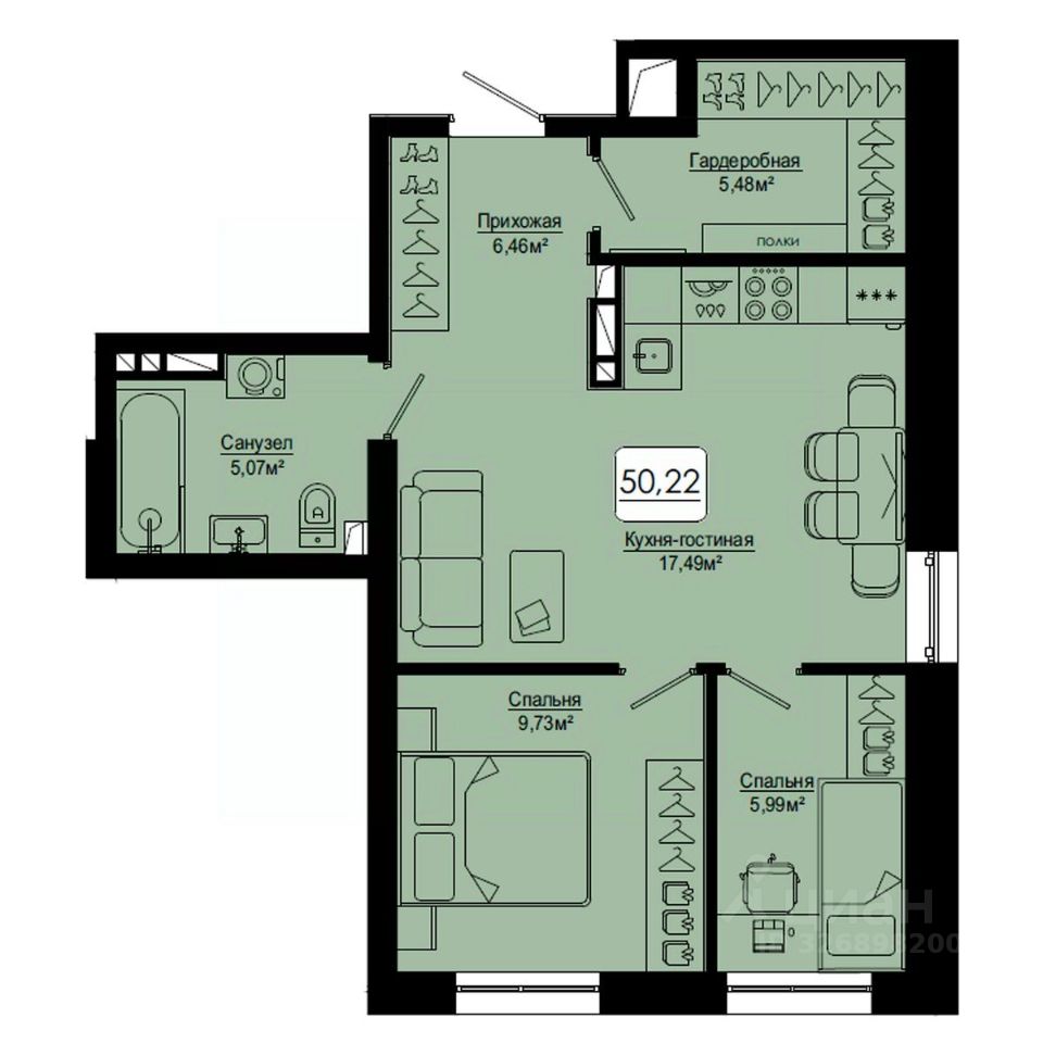 Общая площадь50,22 м²