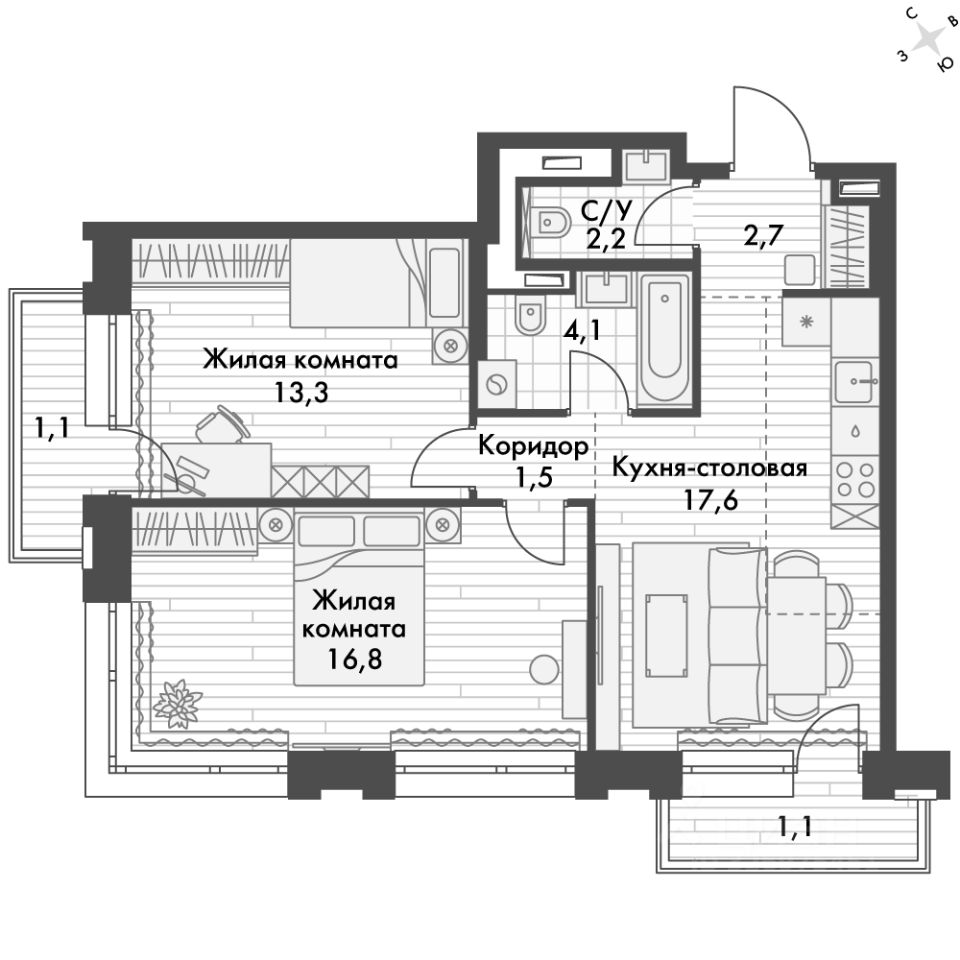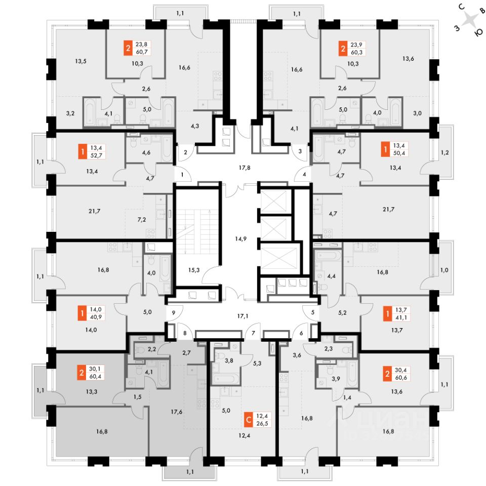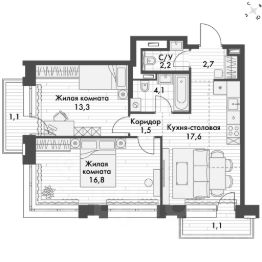 Продаётся 2-к квартира номер 283 общей площадью 60.7 кв.м. на 8-м этаже 23 этажного здания. Отделка Whitebox. Цена с учётом скидки.