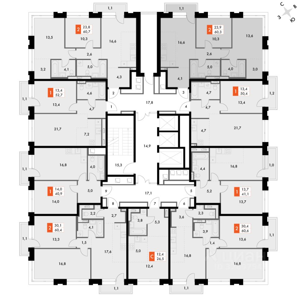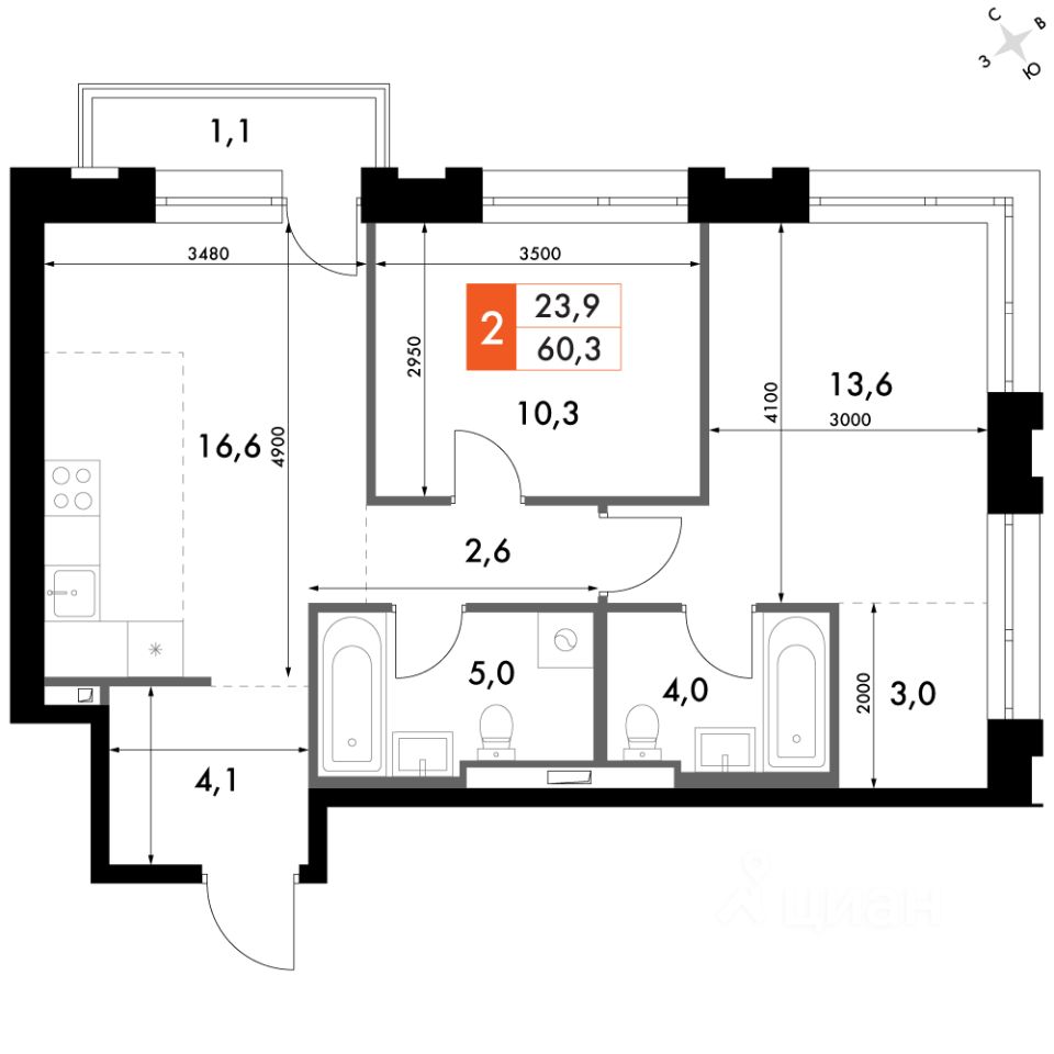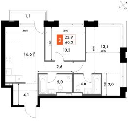 Продаётся 2-к квартира номер 287 общей площадью 61 кв.м. на 9-м этаже 23 этажного здания. Отделка Whitebox. Цена с учётом скидки.