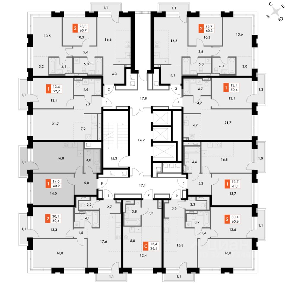 Продаётся 1-к квартира номер 293 общей площадью 43.2 кв.м. на 9-м этаже 23 этажного здания. Отделка Whitebox. Цена с учётом скидки.