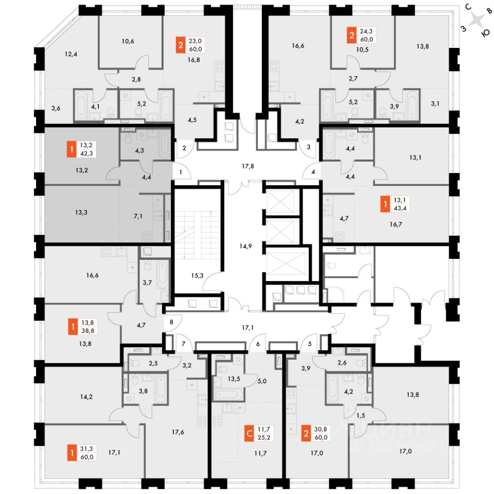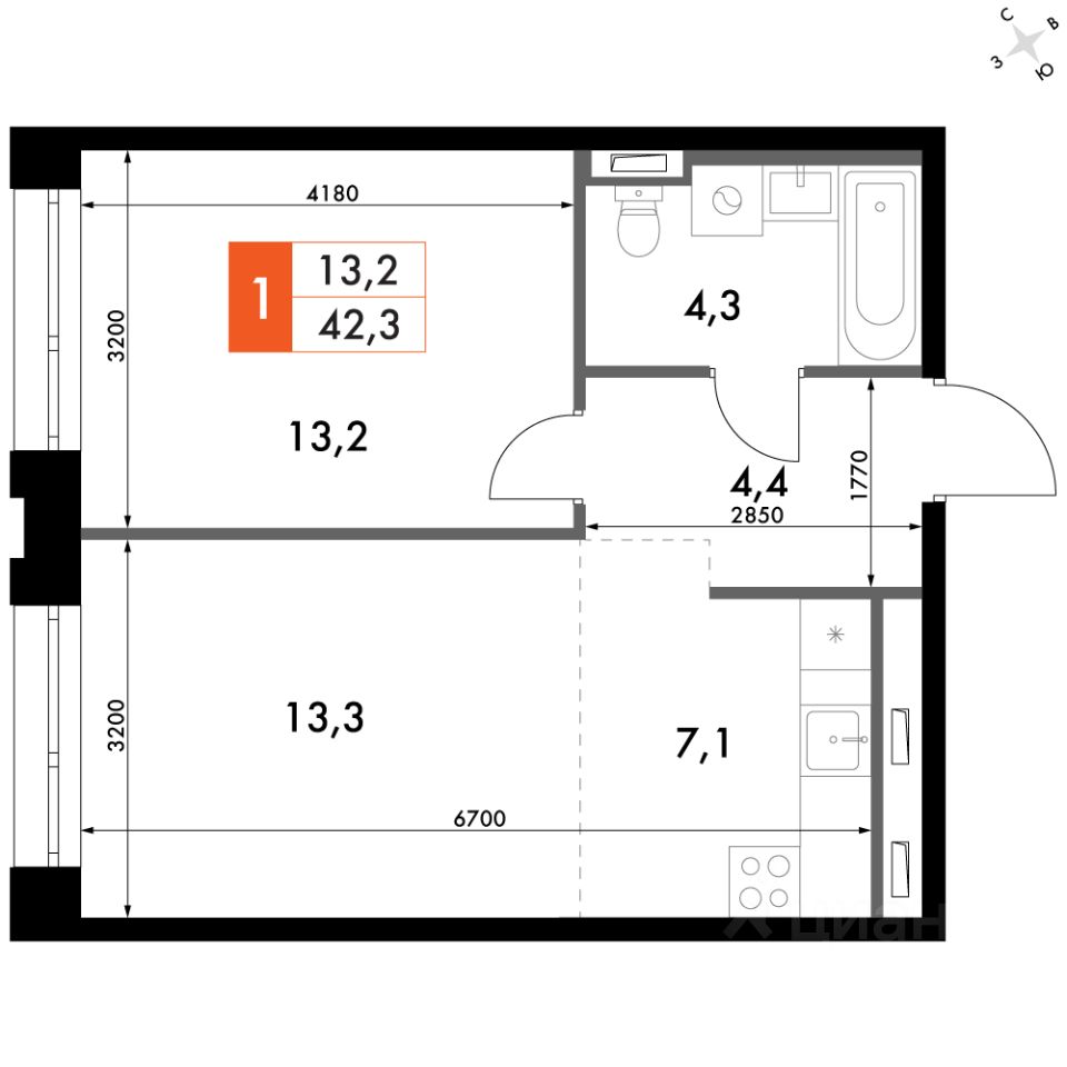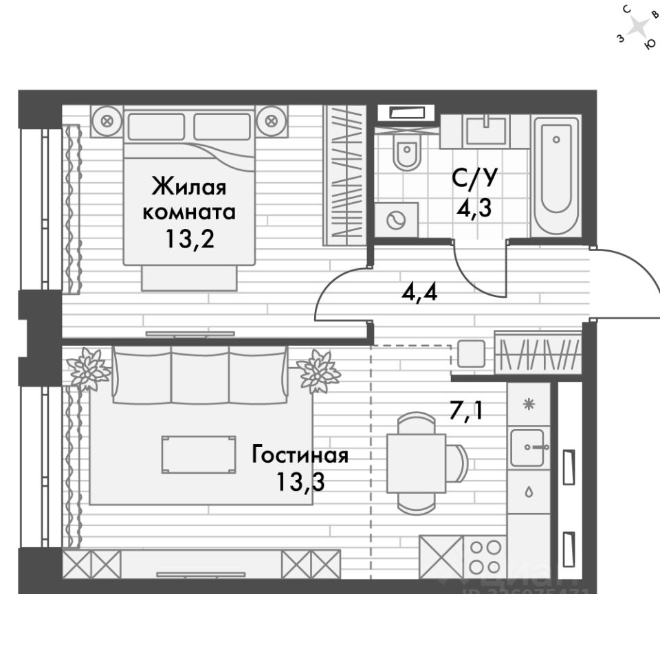 Продаётся 1-к квартира номер 223 общей площадью 43.3 кв.м. на 2-м этаже 23 этажного здания. Отделка Whitebox. Цена с учётом скидки.