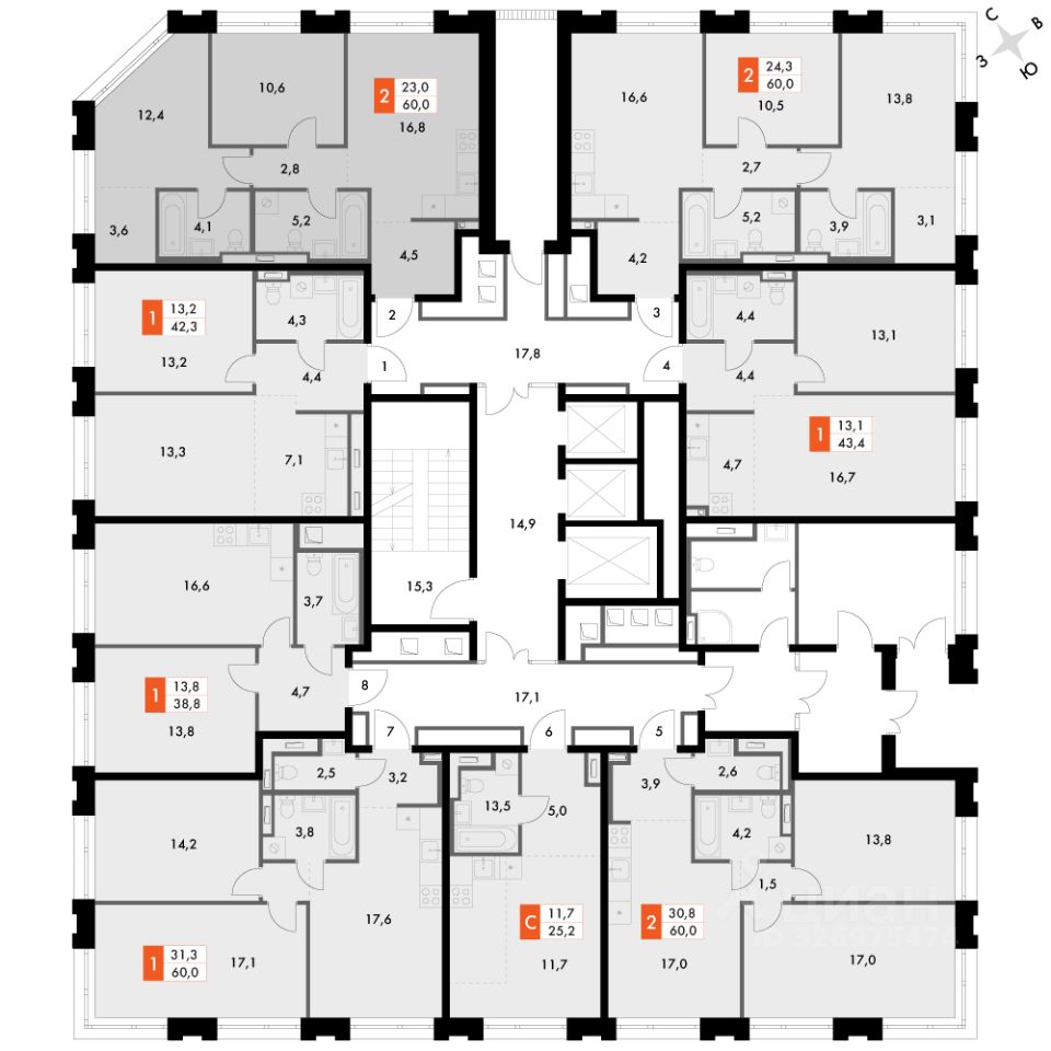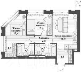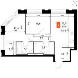 Продаётся 2-к квартира номер 224 общей площадью 57.5 кв.м. на 2-м этаже 23 этажного здания. Отделка Whitebox. Цена с учётом скидки.