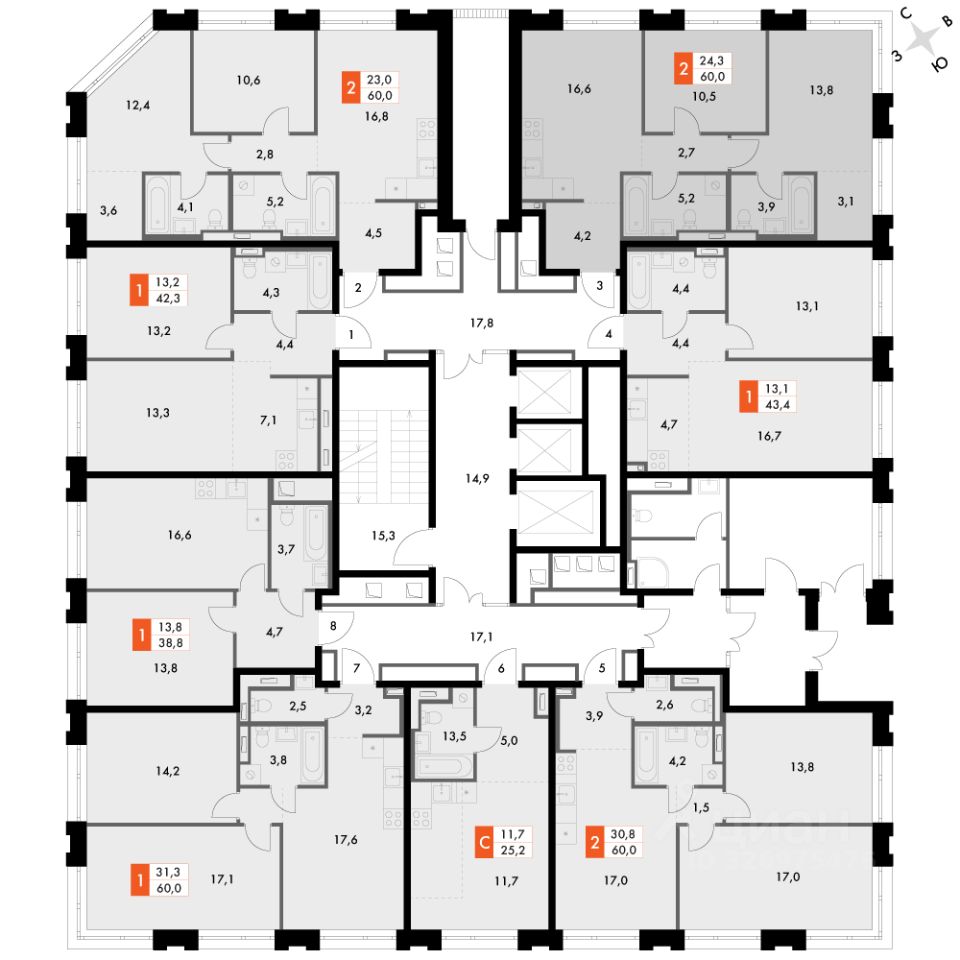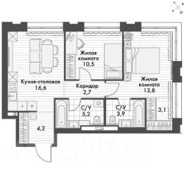 Продаётся 2-к квартира номер 225 общей площадью 59.7 кв.м. на 2-м этаже 23 этажного здания. Отделка Whitebox. Цена с учётом скидки.