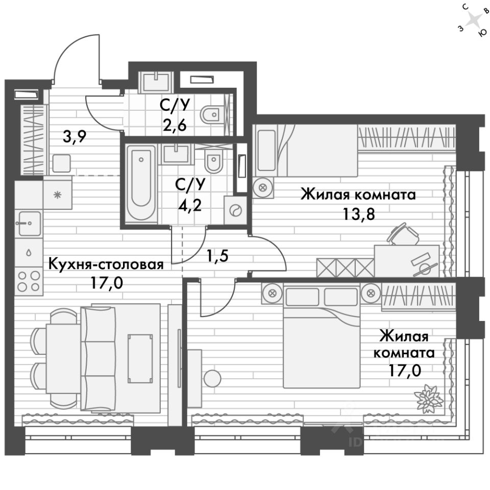 - Угловая планировка - больше пространства для ваших идей.