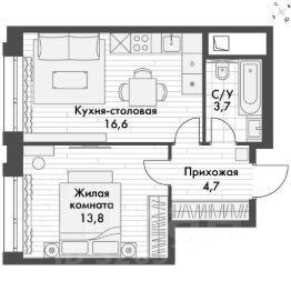 Продаётся 1-к квартира номер 239 общей площадью 42.1 кв.м. на 3-м этаже 23 этажного здания. Отделка Whitebox. Цена с учётом скидки.