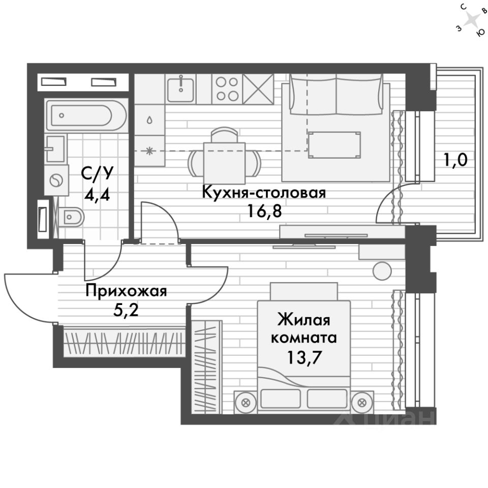 Продаётся 1-к квартира номер 253 общей площадью 42.8 кв.м. на 5-м этаже 23 этажного здания. Отделка Whitebox. Цена с учётом скидки.