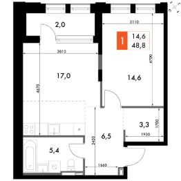 Продаётся 1-к квартира номер 172 общей площадью 49.2 кв.м. на 7-м этаже 14 этажного здания. Отделка Whitebox. Цена с учётом скидки.