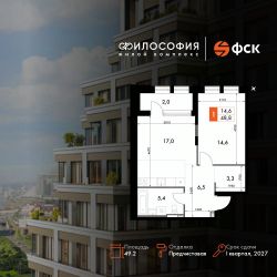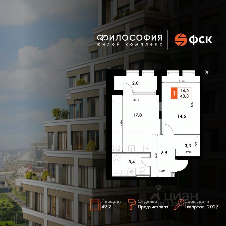 Продаётся 1-к квартира номер 172 общей площадью 49.2 кв.м. на 7-м этаже 14 этажного здания. Предчистовая отделка. Цена с учётом скидки.