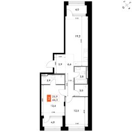 Продаётся 2-к квартира номер 124 общей площадью 70.8 кв.м. на 2-м этаже 14 этажного здания. Отделка Whitebox. Цена с учётом скидки.