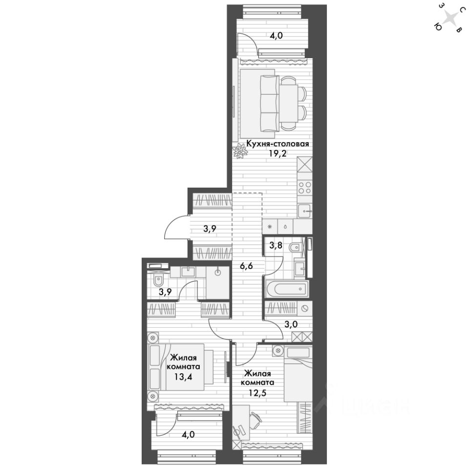 - 15 мин. пешком до Набережной Цесаревича