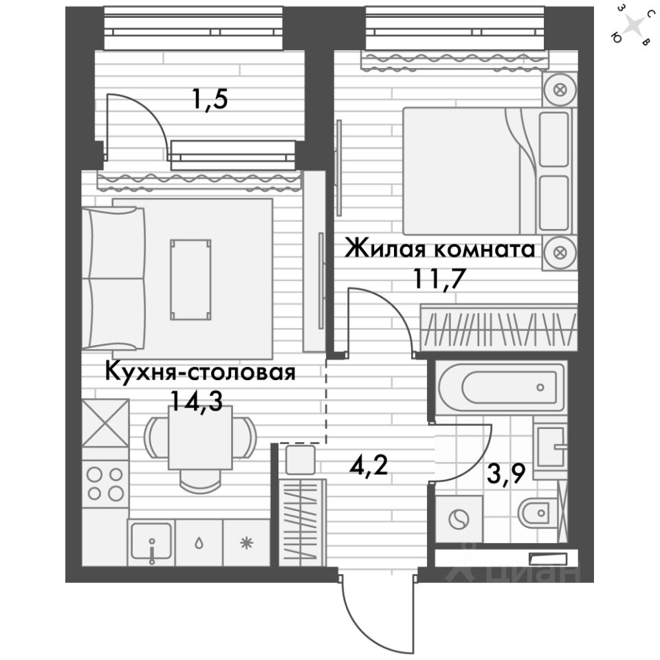 - Линейная планировка - максимальная функциональность и удобство.