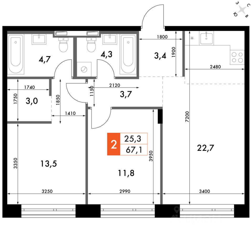 - Евроформат - просторное и удобное жилье с отличной планировкой.