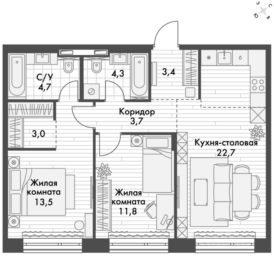 - Линейная планировка - максимальная функциональность и удобство.