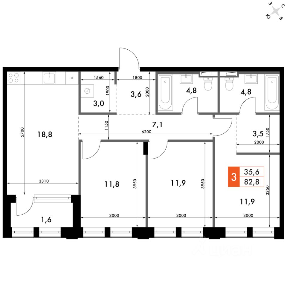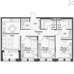 Продаётся 3-к квартира номер 129 общей площадью 83.5 кв.м. на 3-м этаже 14 этажного здания. Отделка Whitebox. Цена с учётом скидки.
