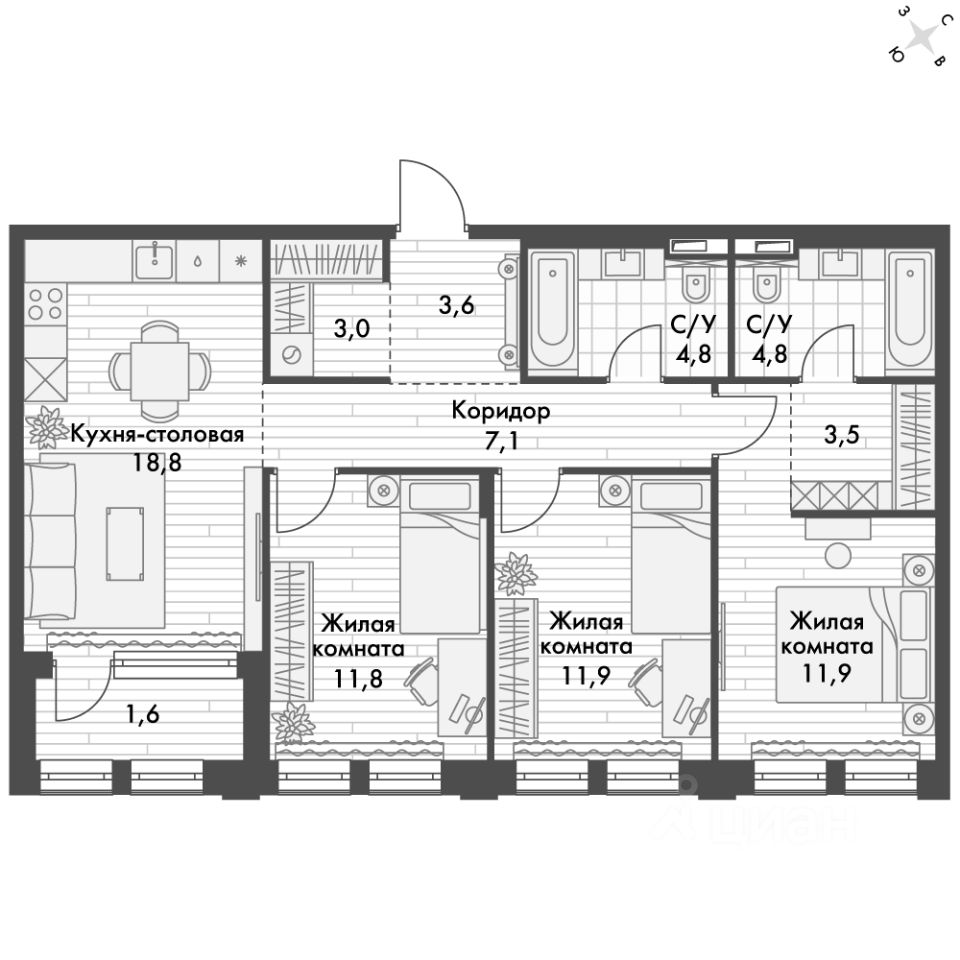 - Мастер-зона с санузлом и гардеробной. Всё для вашего комфорта и удобства, включая личный санузел и гардероб.