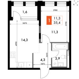 Продаётся 1-к квартира номер 133 общей площадью 35.8 кв.м. на 3-м этаже 14 этажного здания. Отделка Whitebox. Цена с учётом скидки.