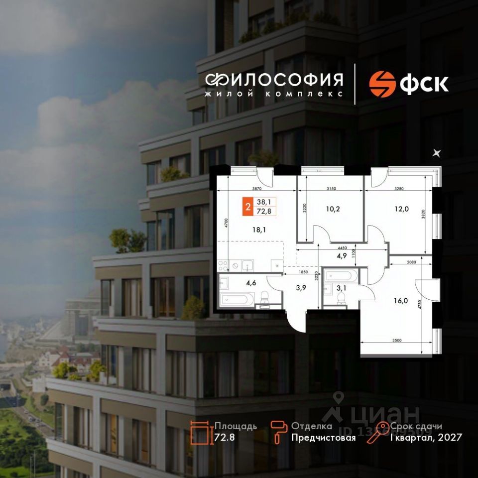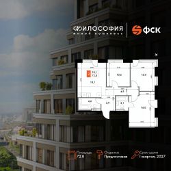 Продаётся 3-к квартира номер 406 общей площадью 72.8 кв.м. на 3-м этаже 10 этажного здания. Предчистовая отделка. Цена с учётом скидки.