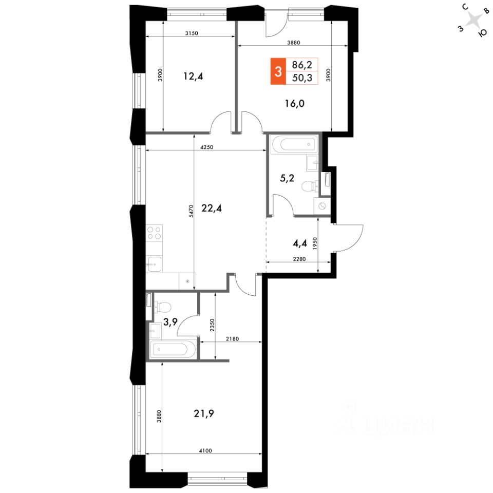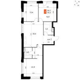 Продаётся 3-к квартира номер 413 общей площадью 85.8 кв.м. на 4-м этаже 10 этажного здания. Отделка Whitebox. Цена с учётом скидки.