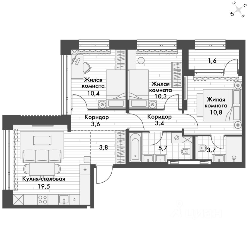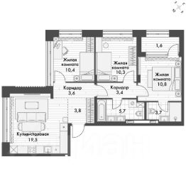 Продаётся 3-к квартира номер 10 общей площадью 73.8 кв.м. на 3-м этаже 14 этажного здания. Отделка Whitebox. Цена с учётом скидки.