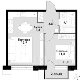 Продаётся 2-к квартира номер 601 общей площадью 43.5 кв.м. на 9-м этаже 12 этажного здания. Отделка Whitebox. Цена с учётом скидки.