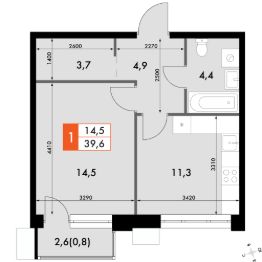 Продаётся 1-к квартира номер 608 общей площадью 39.6 кв.м. на 10-м этаже 12 этажного здания. Отделка Whitebox. Цена с учётом скидки.