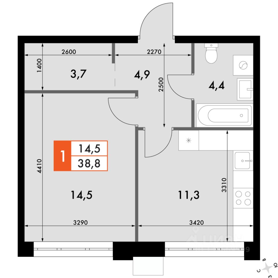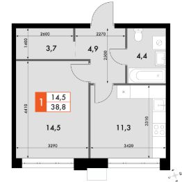Продаётся 1-к квартира номер 617 общей площадью 38.8 кв.м. на 11-м этаже 12 этажного здания. Отделка Whitebox. Цена с учётом скидки.