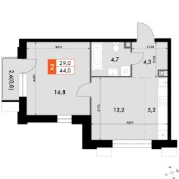 Продаётся 2-к квартира номер 629 общей площадью 44 кв.м. на 12-м этаже 12 этажного здания. Отделка Whitebox. Цена с учётом скидки.
