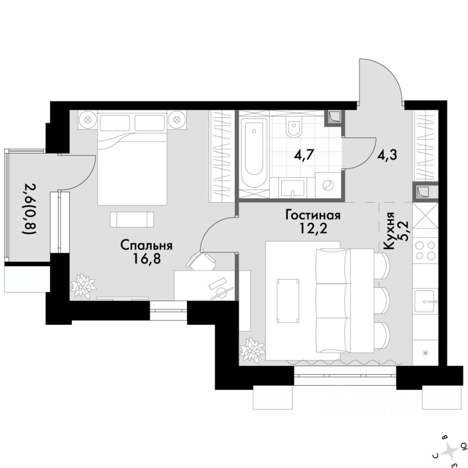 - Угловая планировка - больше пространства для ваших идей.