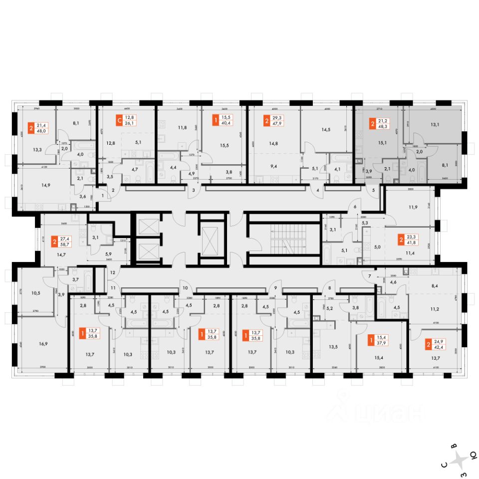 Продаётся 2-к квартира номер 514 общей площадью 48.3 кв.м. на 21-м этаже 22 этажного здания. Отделка Whitebox. Цена с учётом скидки.