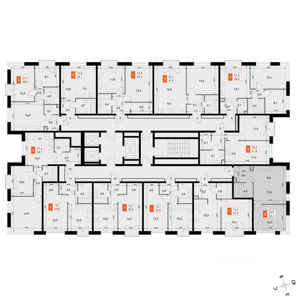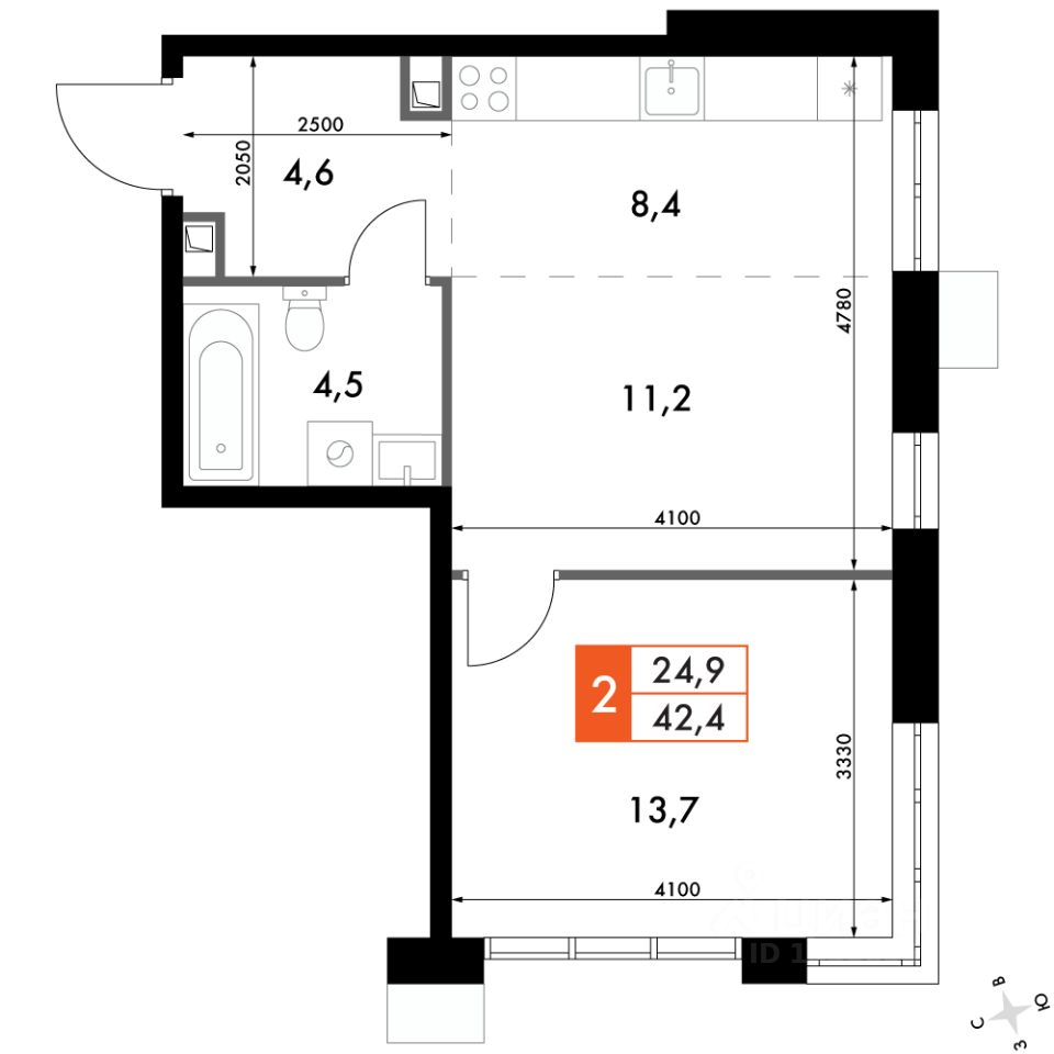 Продаётся 2-к квартира номер 312 общей площадью 42.4 кв.м. на 4-м этаже 22 этажного здания. Отделка Whitebox. Цена с учётом скидки.