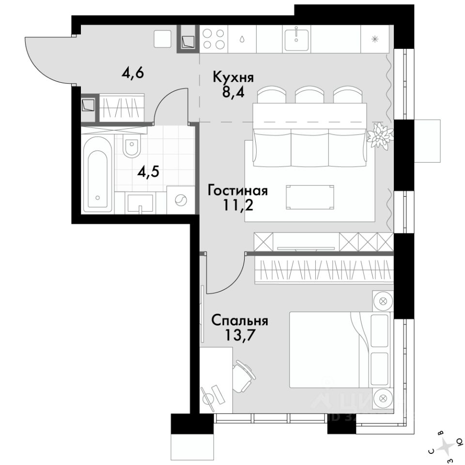 - Угловая планировка - больше пространства для ваших идей.