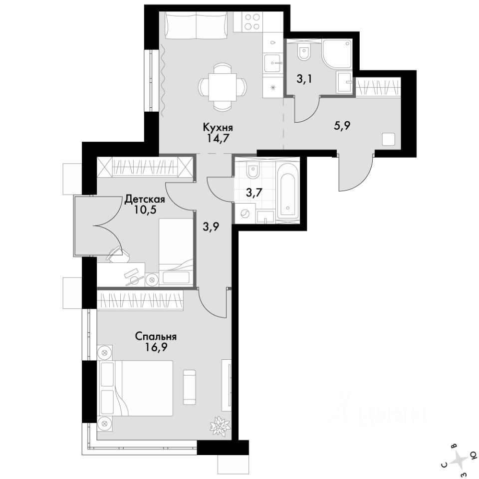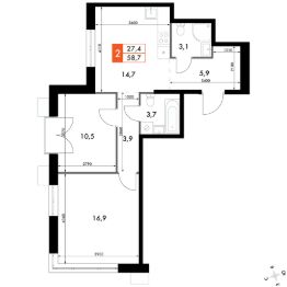 Продаётся 2-к квартира номер 317 общей площадью 58.7 кв.м. на 4-м этаже 22 этажного здания. Отделка Whitebox. Цена с учётом скидки.