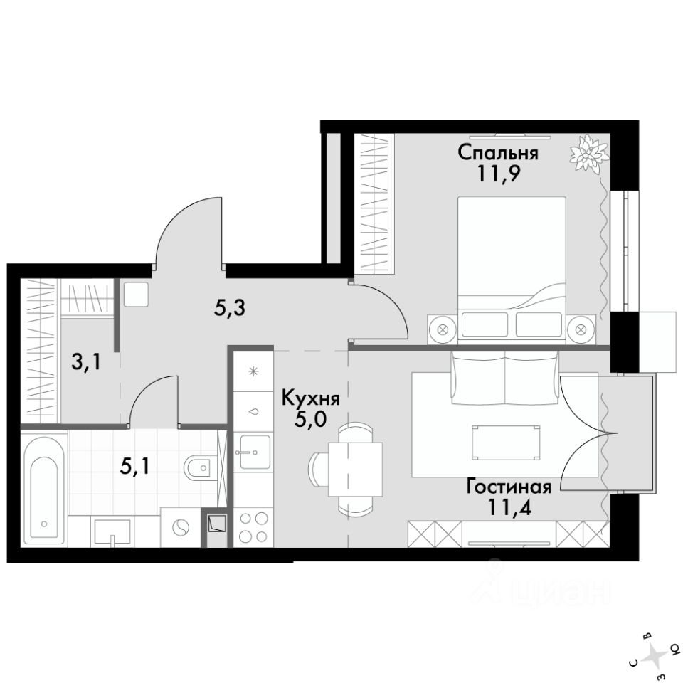 - Линейная планировка - максимальная функциональность и удобство.
