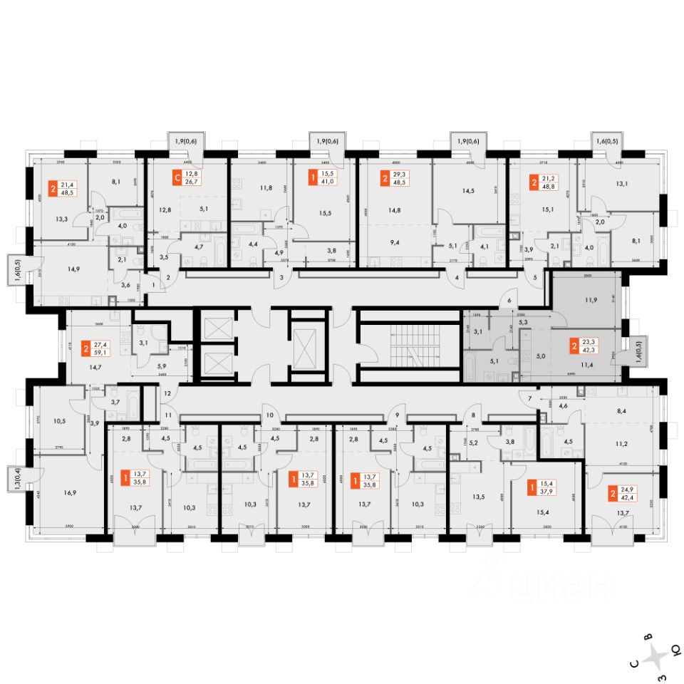 Продаётся 2-к квартира номер 431 общей площадью 42.3 кв.м. на 14-м этаже 22 этажного здания. Отделка Whitebox. Цена с учётом скидки.