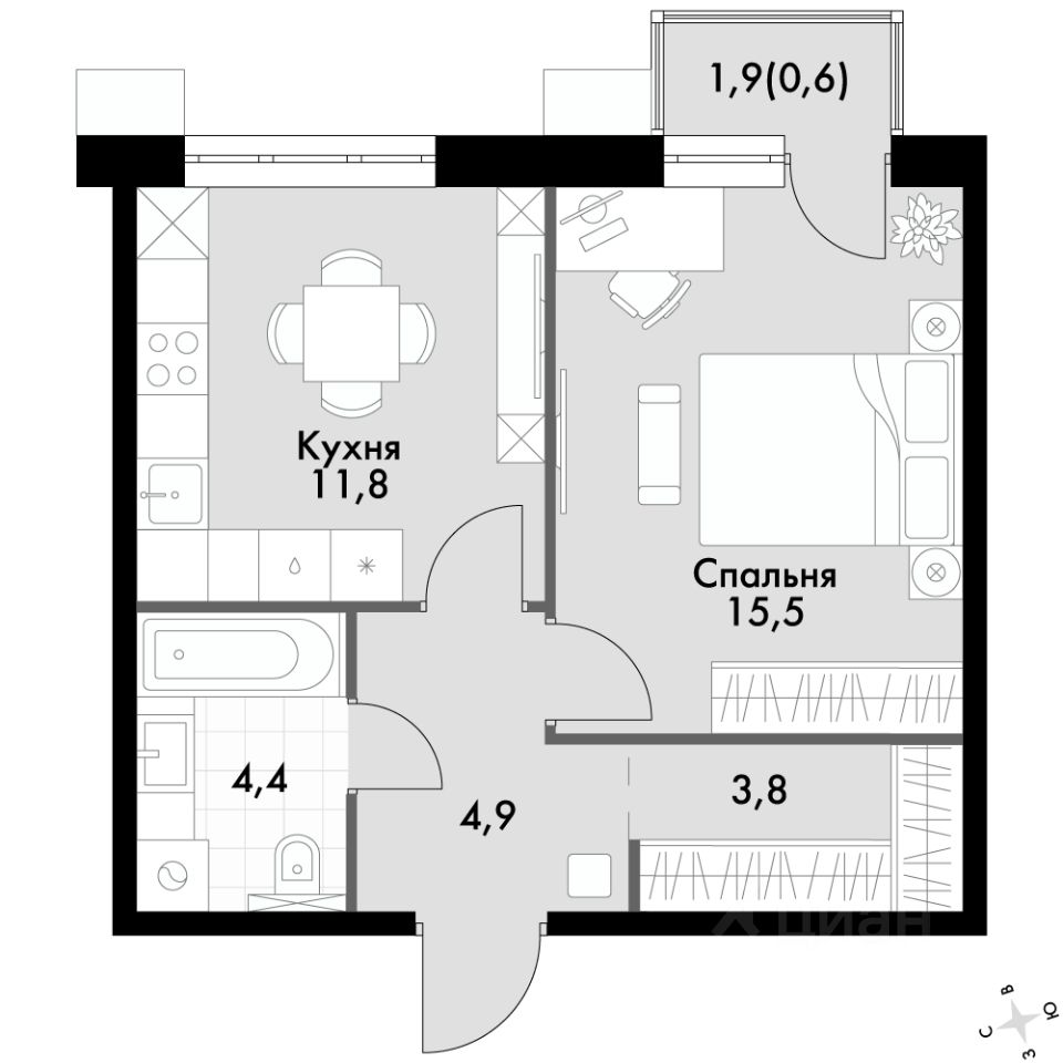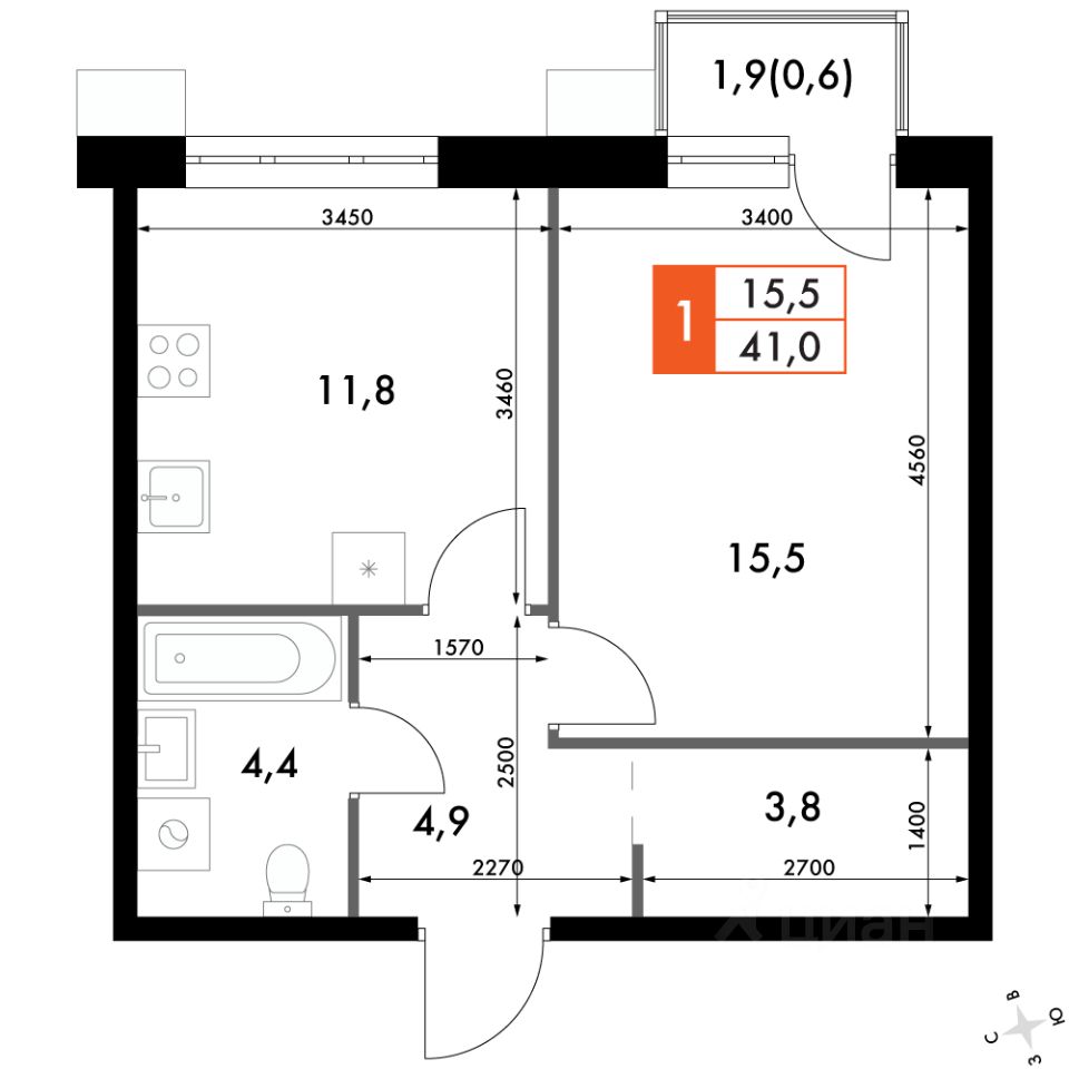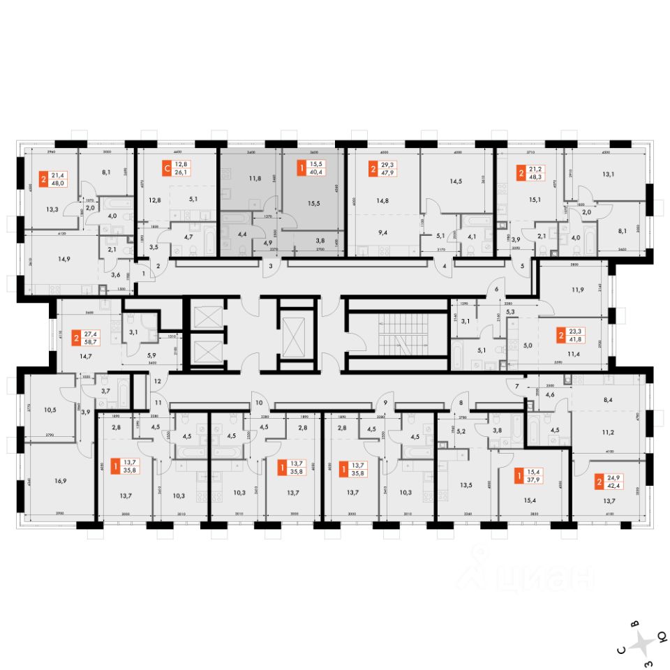 Продаётся 1-к квартира номер 440 общей площадью 40.4 кв.м. на 15-м этаже 22 этажного здания. Отделка Whitebox. Цена с учётом скидки.